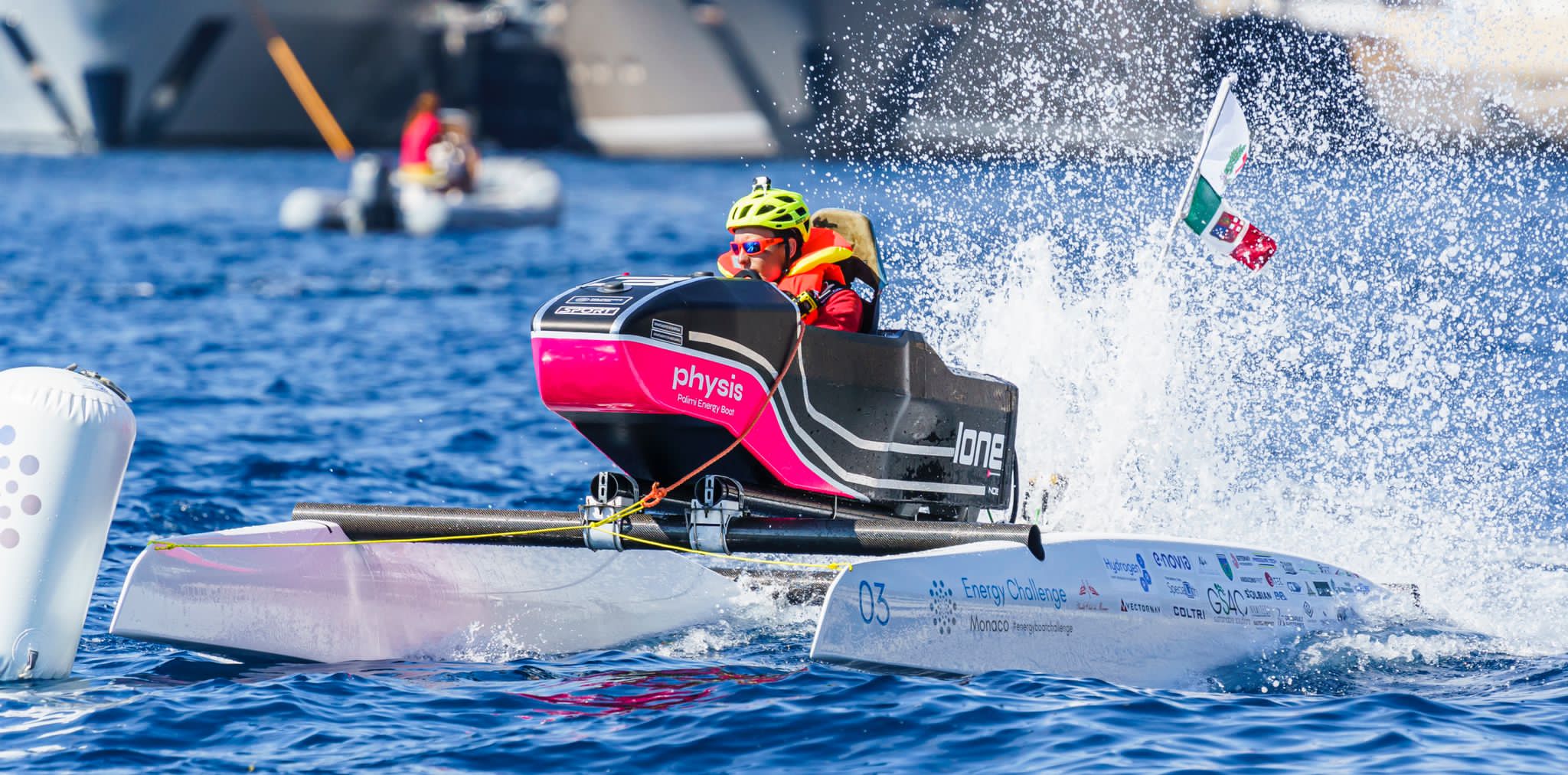Physis PEB era presente al Monaco Energy Boat 2022 per mettere alla prova la loro creazione: una barca ibrida che combina batteria e pannelli solari.